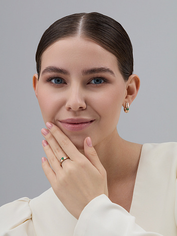 Кольцо, комбинированное золото, изумруд, проба 585