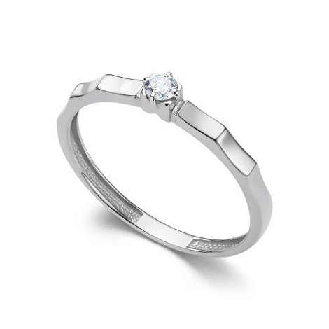 Нежное и романтичное кольцо с роскошным искрящимся бриллиантом в оригинальном касте, выполнено из белого золота 585 пробы