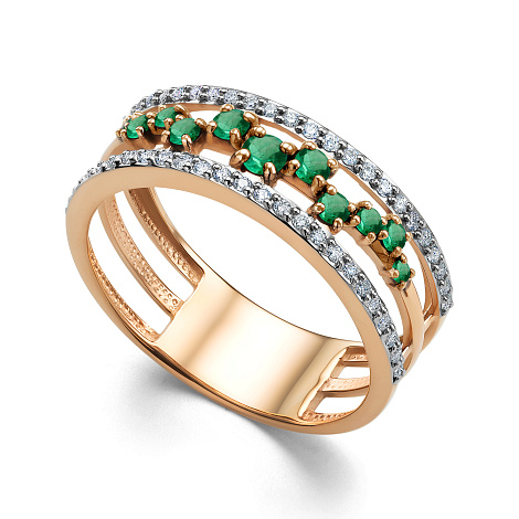 Кольцо, комбинированное золото, изумруд, проба 585