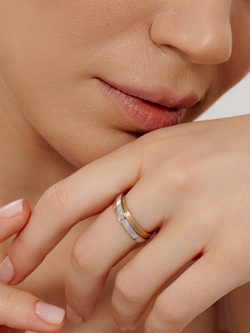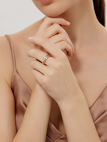 Кольцо обручальное, комбинированное золото, бриллиант, проба 585