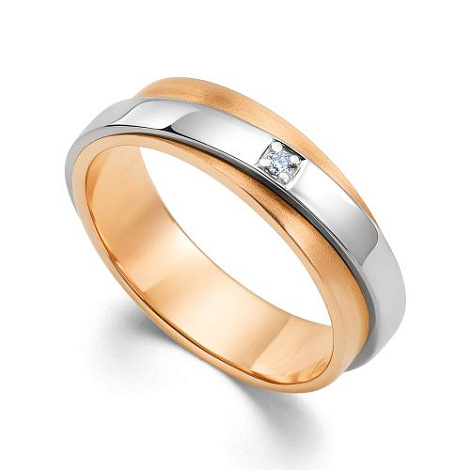 Обручальное кольцо выполненное из красного и белого золота 585 пробы и украшенное сверкающим бриллиантом – это символ любви и верности, который станет прекрасным украшением для вашей руки