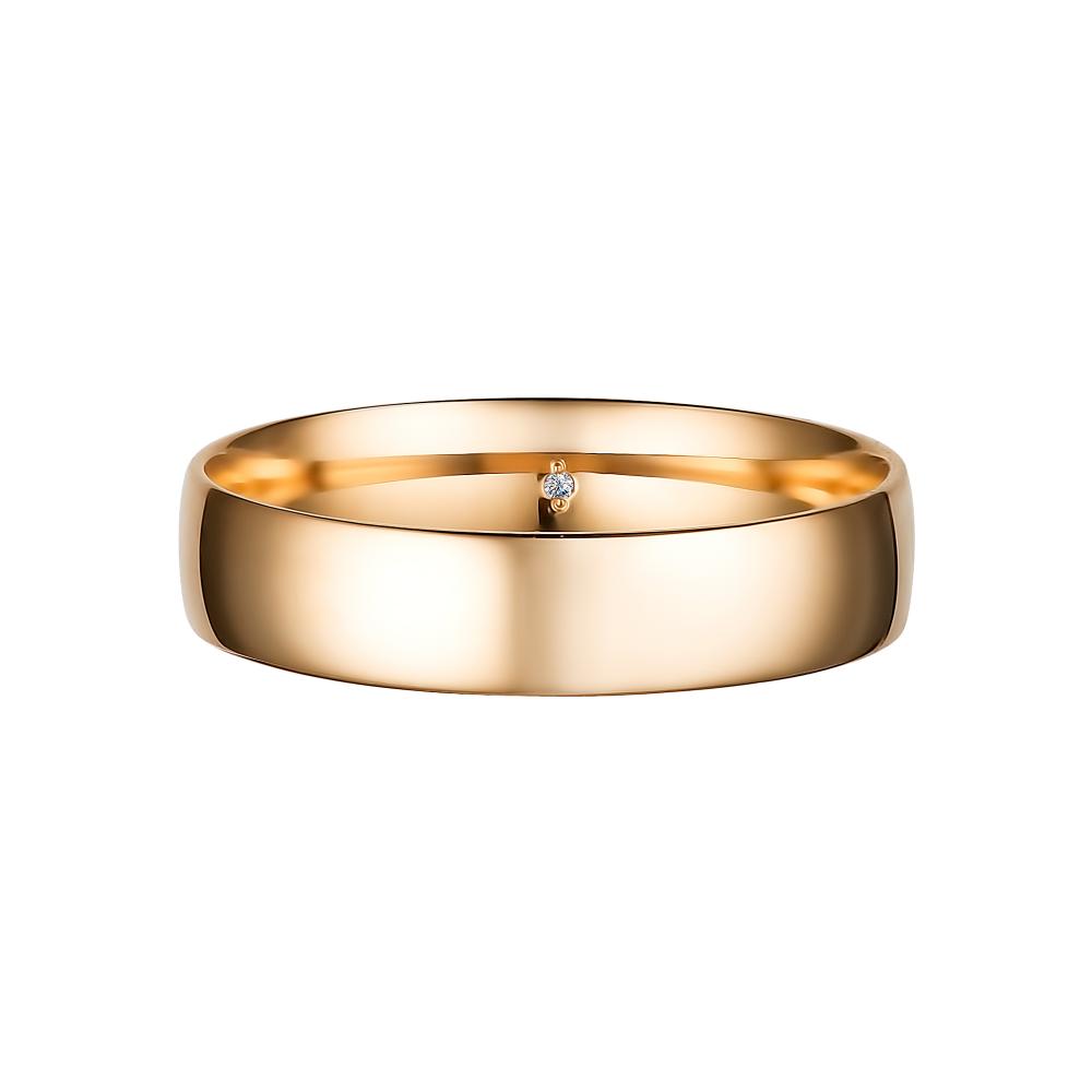 Кольцо обручальное, красное золото, бриллиант, проба 585