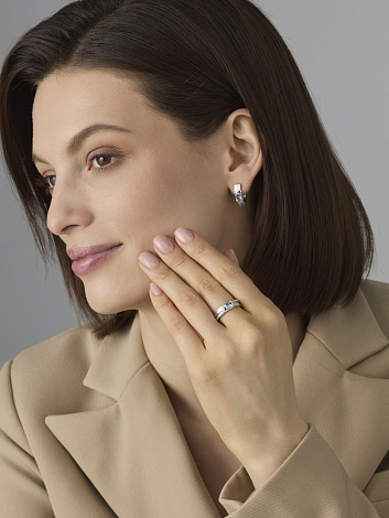 Элегантное кольцо из серебра 925 пробы украшено сверкающим топазом и мелкими фианитами