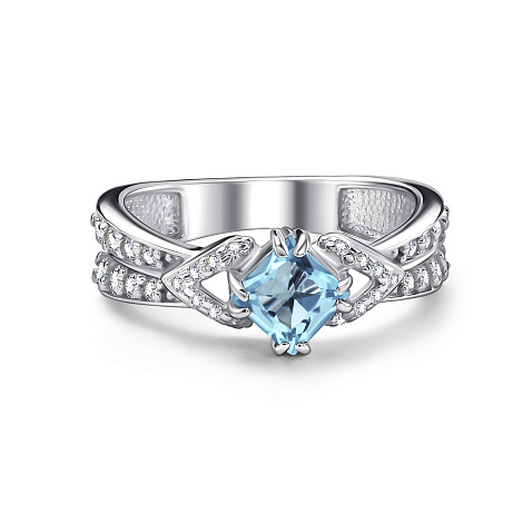 Изящное кольцо из серебра 925 пробы украшено прозрачным топазом и сверкающими фианитами. Благородный блеск металла подчёркивают природную красоту камня, делая украшение стильным и универсальным. Представлено брендом АЛЬКОР. Средняя характеристика камней: 1 Топаз Sky Blue Голубой Квадрат 0,806, 4 Фианит Белый Круг 0,26, 4 Фианит Белый Круг 0,184, 4 Фианит Белый Круг 0,112, 4 Фианит Белый Круг 0,068, 14 Фианит Белый Круг 0,126 В комплект поставки входит:
