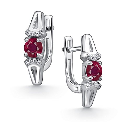 Элегантные серебряные серьги из серебра 925 пробы украшены роскошными рубинами и сверкающими фианитами