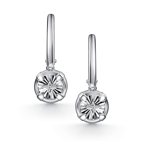 Элегантные серебряные серьги из качественного серебра 925 пробы украшены сверкающими бриллиантами
