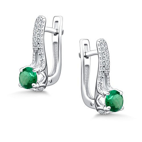 Изящные серебряные серьги из серебра 925 пробы украшены сияющими изумрудами и сверкающими фианитами. Очарование благородного металла и сияние драгоценных камней делают украшение стильным и изысканным дополнением к вашему образу. Представлено брендом АЛЬКОР. Средняя характеристика камней: 2 Изумруд Зеленый Круг 0,89, 64 Фианит Белый Круг 0,384 В комплект поставки входит: