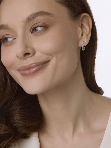 Изящные серебряные серьги из серебра 925 пробы украшены сияющими изумрудами и сверкающими фианитами