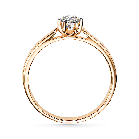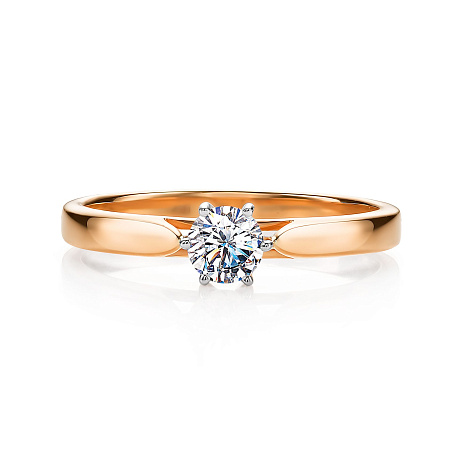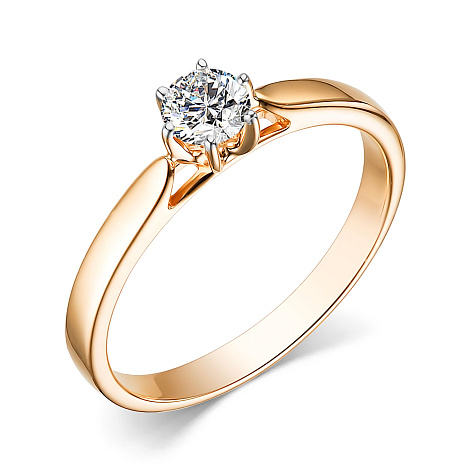 Кольцо классического дизайна с великолепным сверкающим бриллиантом, выполнено из красного золота 585 пробы. Лапки каста подсвечены каплями родия, которые придают камню больше блеска, объема и глубины. Именно такие украшения универсально подходят к какому угодно образу и способны изящно завершить любой наряд. Изделие представлено брендом АЛЬКОР. Средняя характеристика камня на артикул: 1 Бриллиант Круг 57 0.346 4/6. К украшению прилагается сертификат от производителя о подлинности драгоценных камней. В комплект поставки входит: