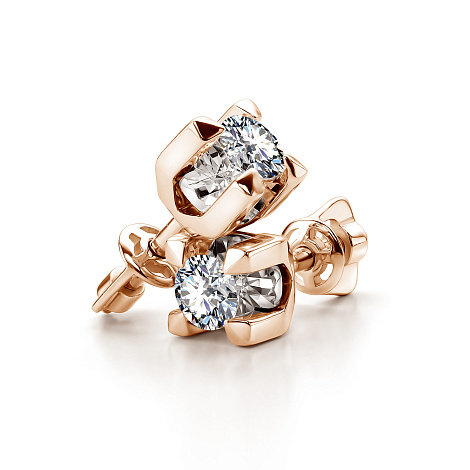 Элегантные серьги-пусеты с великолепными бриллиантами, выполнены из красного золота 585 пробы