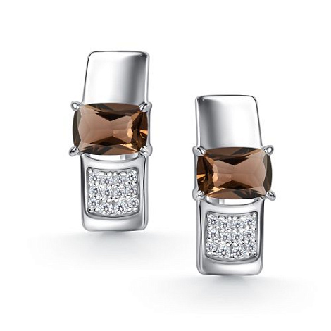 Элегантные серебряные серьги из серебра 925 пробы украшены дымчатыми раух-топазами и сверкающими фианитами