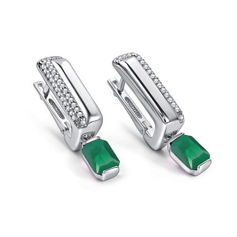 Изящные серебряные серьги из серебра 925 пробы украшены натуральным агатом и сверкающими фианитами