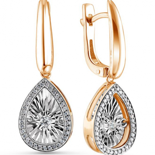 Серьги, комбинированное золото, бриллиант, проба 585