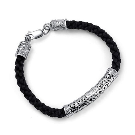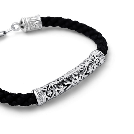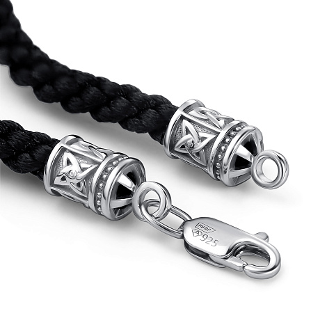 Стильный браслет-шнурок оснащен надежной застежкой из качественного серебра 925 пробы