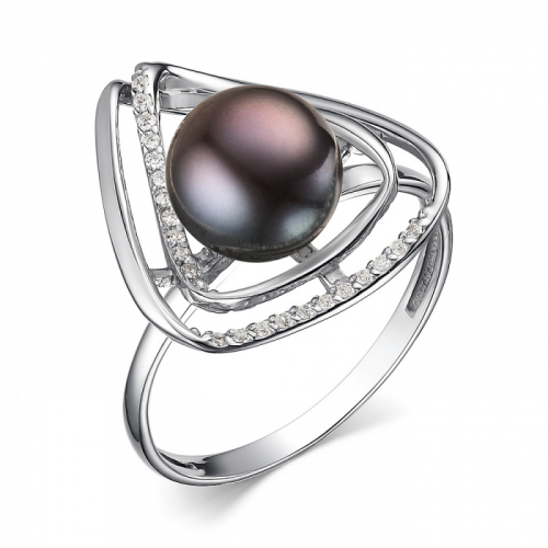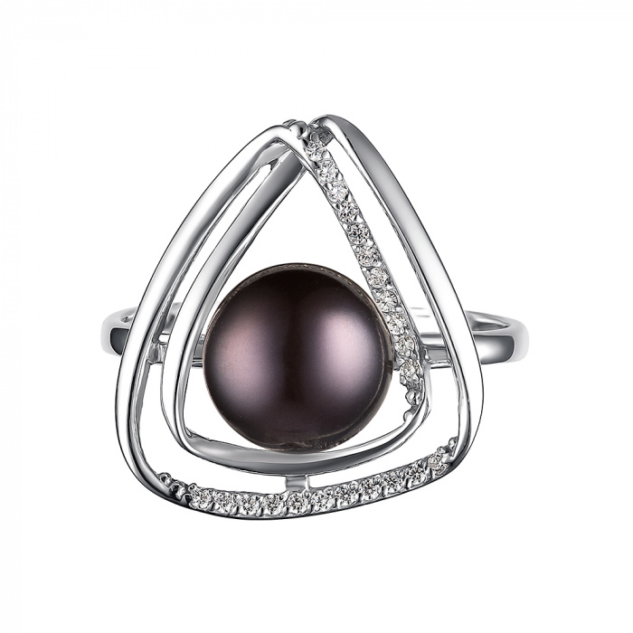 Изящное кольцо из серебра 925 пробы украшено нежным жемчугом и сверкающими фианитами