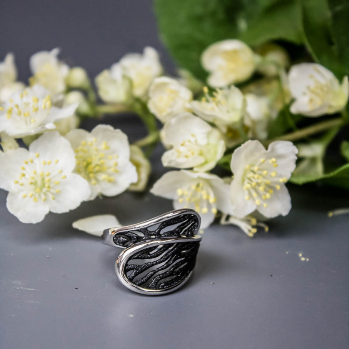 Серебряное кольцо необычного дизайна из качественного серебра 925 пробы привлекает внимание своей оригинальностью и творческим подходом