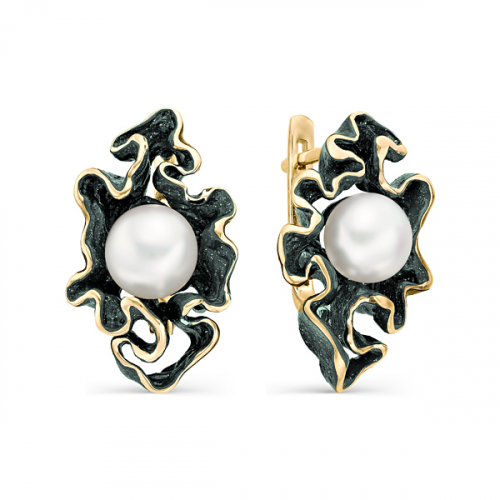 Оригинальные серебряные серьги из серебра 925 пробы привлекают внимание своим необычным дизайном и натуральным жемчугом