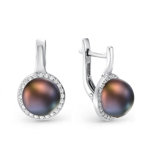Изящные серебряные серьги из серебра 925 пробы украшены натуральным жемчугом и сверкающими фианитами