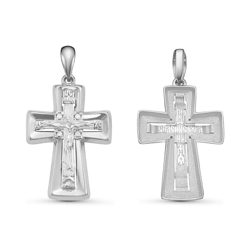 Православный крестик из серебра 925 пробы украшен сверкающими фианитами