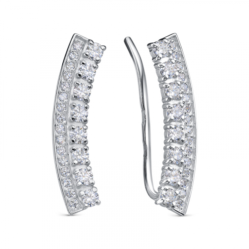 Элегантные серебряные серьги-зажимы из качественного серебра 925 пробы украшены сверкающими фианитами