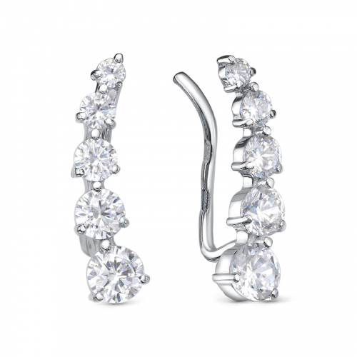 Элегантные серебряные серьги-жимы из качественного серебра 925 пробы украшены сверкающими фианитами