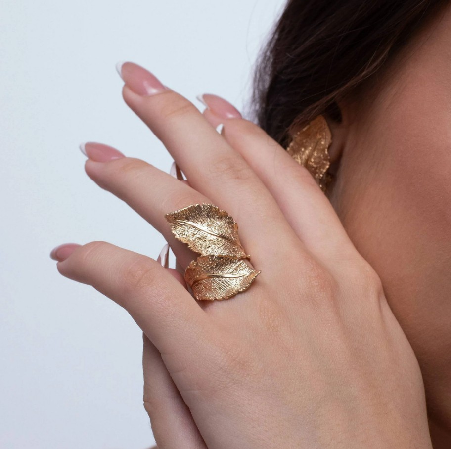 Изящное кольцо из качественного серебра 925 пробы, покрытое тонким слоем позолоты