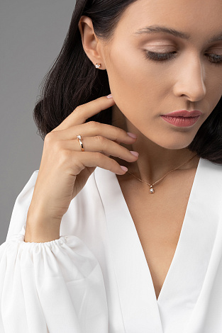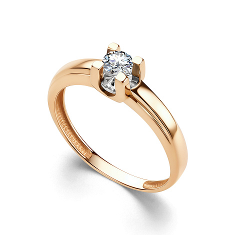 Изящное кольцо с сверкающим бриллиантом выполнено с сочетанием красного и белого золота 585 пробы