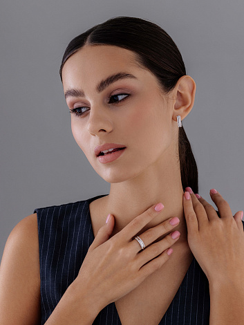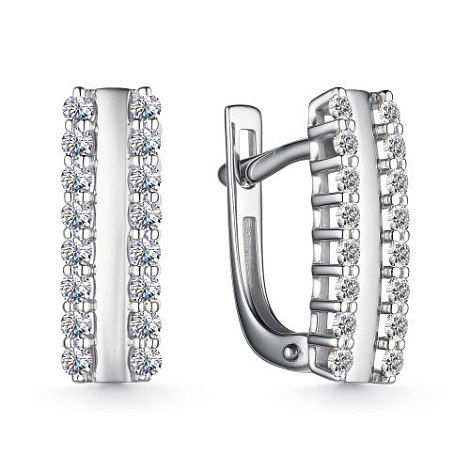 Элегантные серьги, украшенные дорожками бриллиантов, выполнены из белого золота 585 пробы