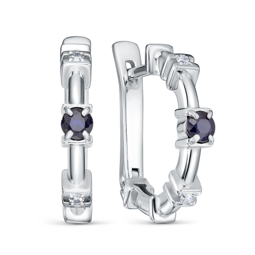 Изящные серебряные серьги из качественного серебра 925 пробы украшены сверкающими сапфирами и бриллиантами