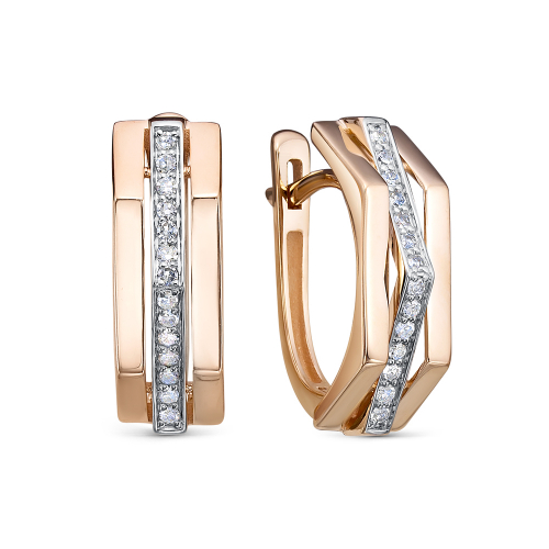 Стильные эффектные серьги, украшенные дорожками сияющих бриллиантов, выполнены в сочетании красного и белого золота 585 пробы