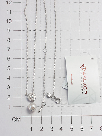 Серебряное колье 925 пробы с подвеской из жемчуга и бриллианта — это роскошное украшение, которое подчёркивает природную красоту камней и благородство металла
