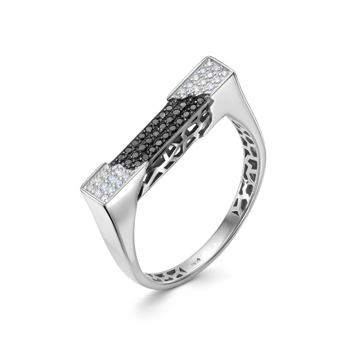 Изящное кольцо из белого золота 585 пробы украшено сверкающими белыми и таинственными черными бриллиантами