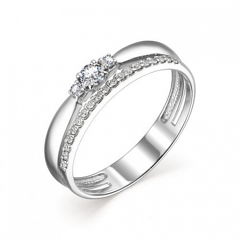 Кольцо из белого золота 585 пробы с тремя центральными бриллиантами и дорожкой из бриллиантов, от бренда Алькор