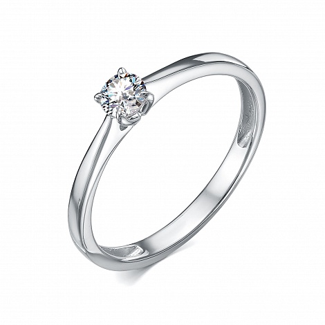 Нежное кольцо с роскошным сверкающим бриллиантом выполнено из белого золота 585 пробы