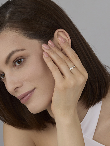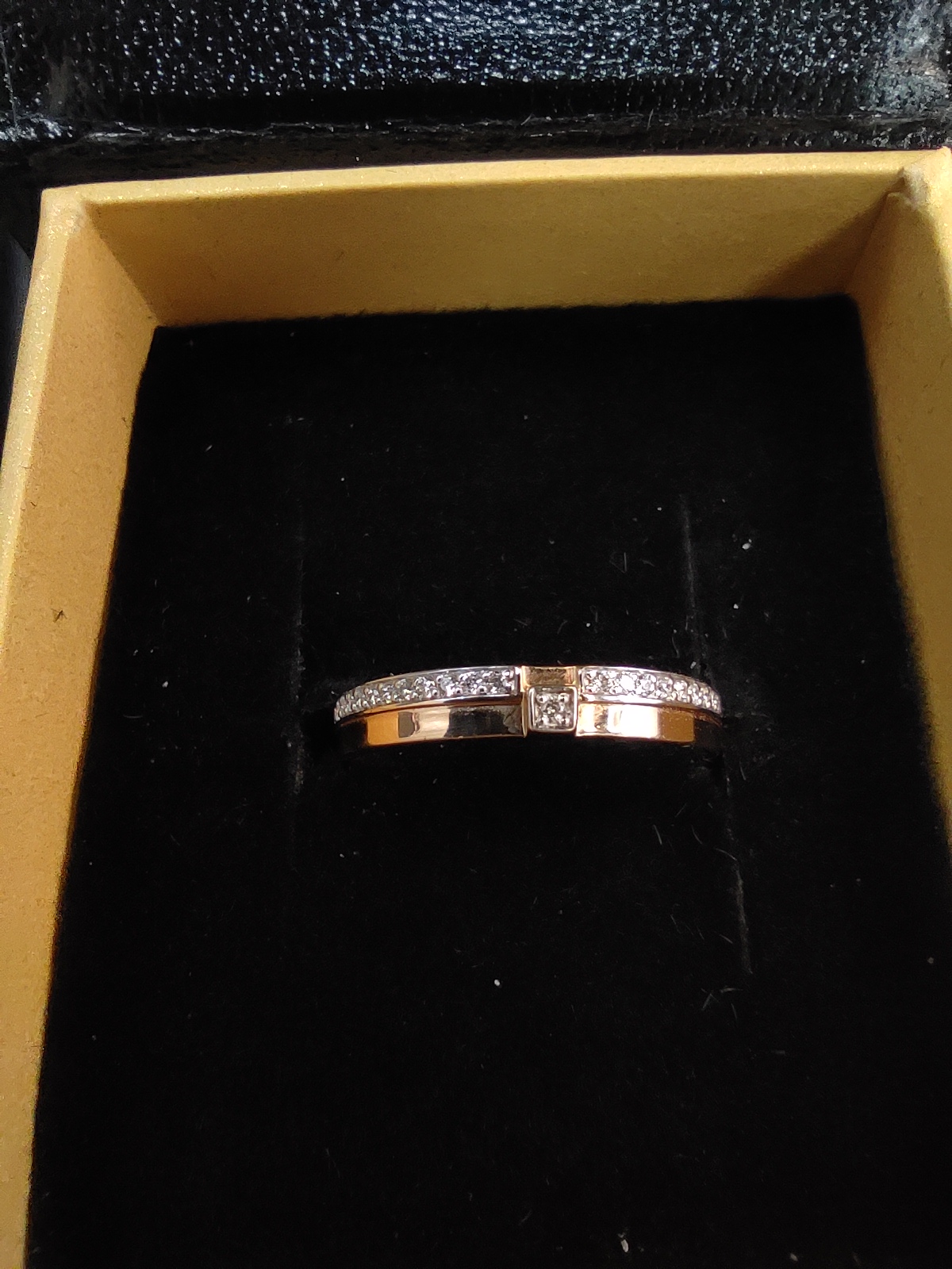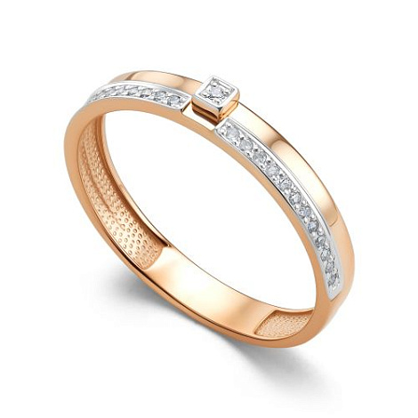 Роскошное кольцо, выполнено в сочетании красного и белого золота 585 пробы, украшено искрящейся россыпью бриллиантов