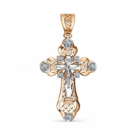 Православный крест выполнен в сочетании красного и белого золота 585 пробы