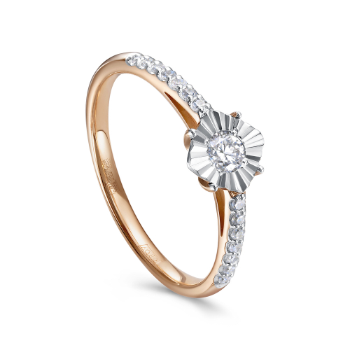 Изящное кольцо из благородного сочетания красного и белого золота 585 пробы украшено сверкающими бриллиантами