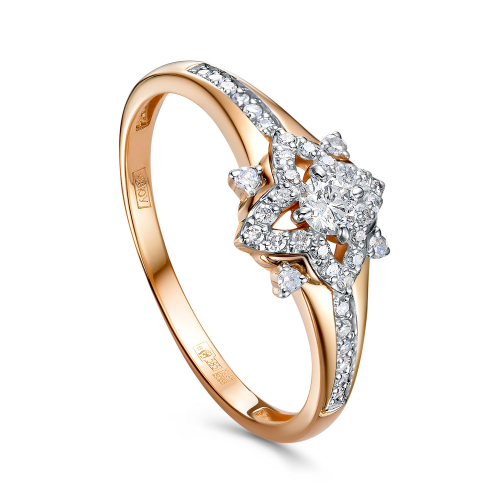 Изящное кольцо из благородного сочетания красного и белого золота 585 пробы украшено сверкающими бриллиантами