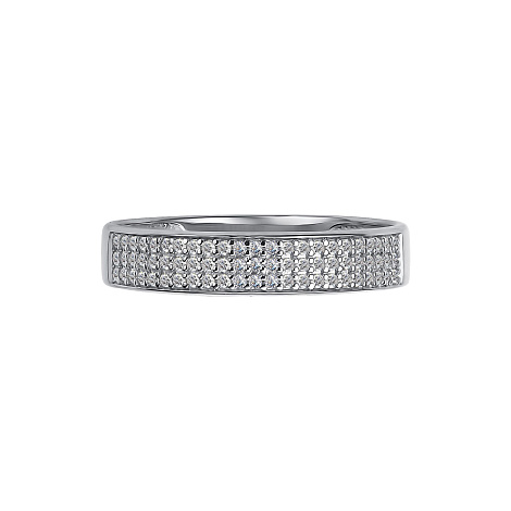 Стильное кольцо выполнено из белого золота 585 пробы, украшено великолепными сияющими бриллиантами