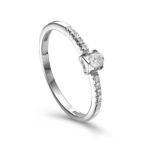 Кольцо из качественного белого золота 585 пробы украшено прекрасными сверкающими бриллиантами, демонстрируя превосходство формы и огранки