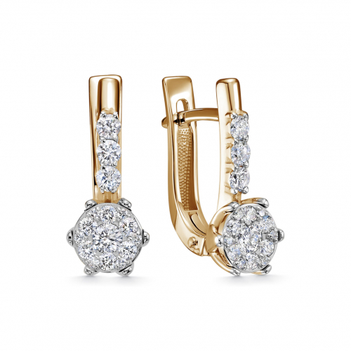 Серьги из шикарного союза красного и белого золота увенчаны множеством сверкающих бриллиантов, соединяющих теплое золото и прохладный металлический блеск