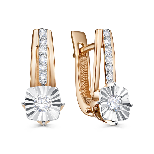 Серьги из шикарного союза красного и белого золота увенчаны множеством сверкающих бриллиантов, соединяющих теплое золото и прохладный металлический блеск. Тонкая линия перехода между двумя цветами дарит изделию необычную динамику и зрительный интерес. Использование английского замка гарантирует прочность фиксации и комфортное использование в любое время суток. Эти серьги прекрасно дополнят любой наряд, сделав образ завершенным и запоминающимся. Представлено брендом KABAROVSKY. Средняя характеристика камней: 12 Бриллиант Круг-17 120-200 2/2А 0.091ct|2 Бриллиант Круг-57 7-10 3/6А 0.249ct В комплект поставки входит: