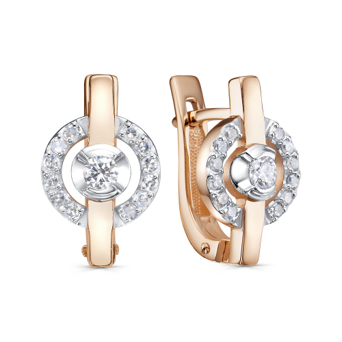 Серьги из шикарного союза красного и белого золота увенчаны множеством сверкающих бриллиантов, соединяющих теплое золото и прохладный металлический блеск