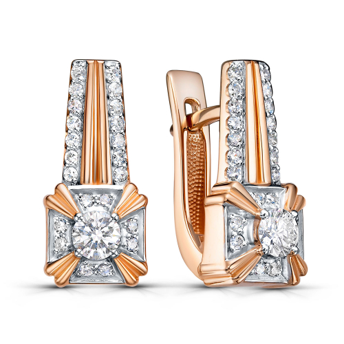 Серьги из шикарного союза красного и белого золота увенчаны множеством сверкающих бриллиантов, соединяющих теплое золото и прохладный металлический блеск