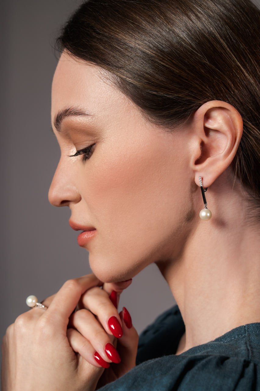 Удлиненные серьги из белого золота 585 пробы — идеальные спутники для создания элегантного и утончённого образа. Великолепное сочетание сверкающего белого золота с естественной красотой жемчуга и огнём бриллиантов создает роскошный ансамбль, который подчеркивает индивидуальность и стиль. Надежный английский замок обеспечивает комфорт и безопасность при носке. Эти серьги станут неотъемлемой частью коллекции современной женщины, стремящейся подчеркнуть свою привлекательность и избранность. Представлено брендом KABAROVSKY. Средняя характеристика камней: 10 Бриллиант Круг-17 120-200 2/2А 0.075ct|2 Жемчуг культивированный Круг 9,0-9,5 В комплект поставки входит:
