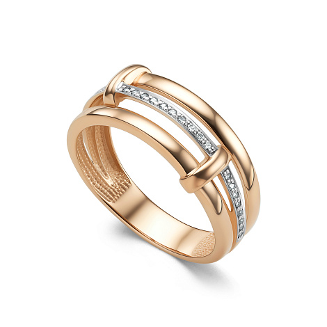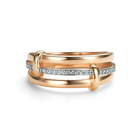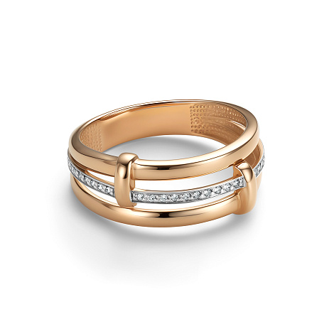 Кольцо из красного и белого золота 585 пробы с дорожкой бриллиантов — это элегантное и стильное украшение, которое сочетает в себе два благородных металла