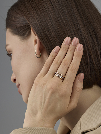 Кольцо, комбинированное золото, бриллиант, проба 585