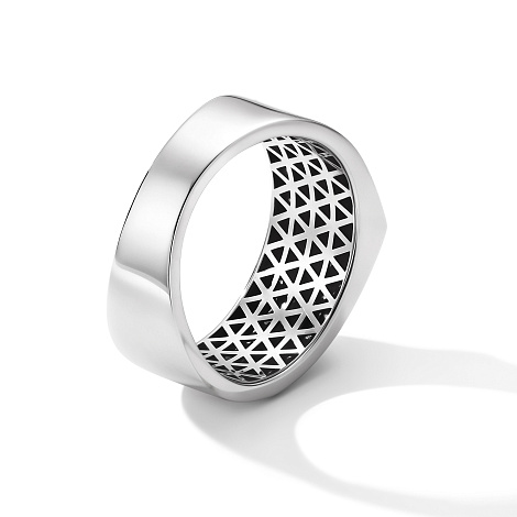 Кольцо из белого золота 585 пробы, украшенное контрастным сочетанием черных и белых бриллиантов, производит сильное впечатление