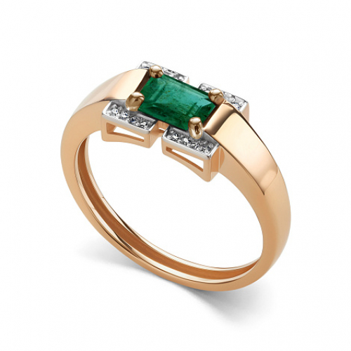 Кольцо из красного и белого золота 585 пробы с изумрудом и бриллиантами — это воплощение элегантности и изысканности