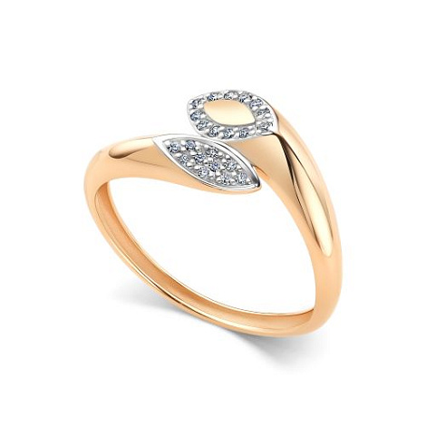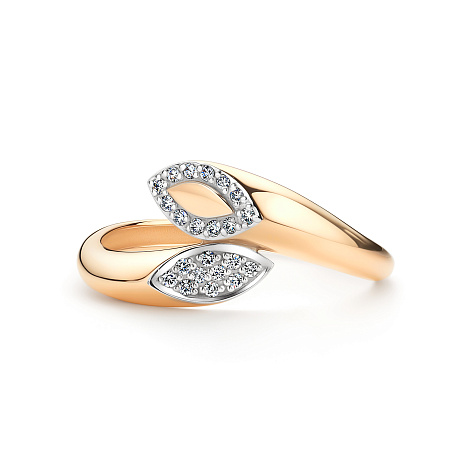 Кольцо из красного и белого золота 585 пробы с бриллиантами — это изысканное украшение, сочетающее в себе благородство металлов и блеск драгоценных камней